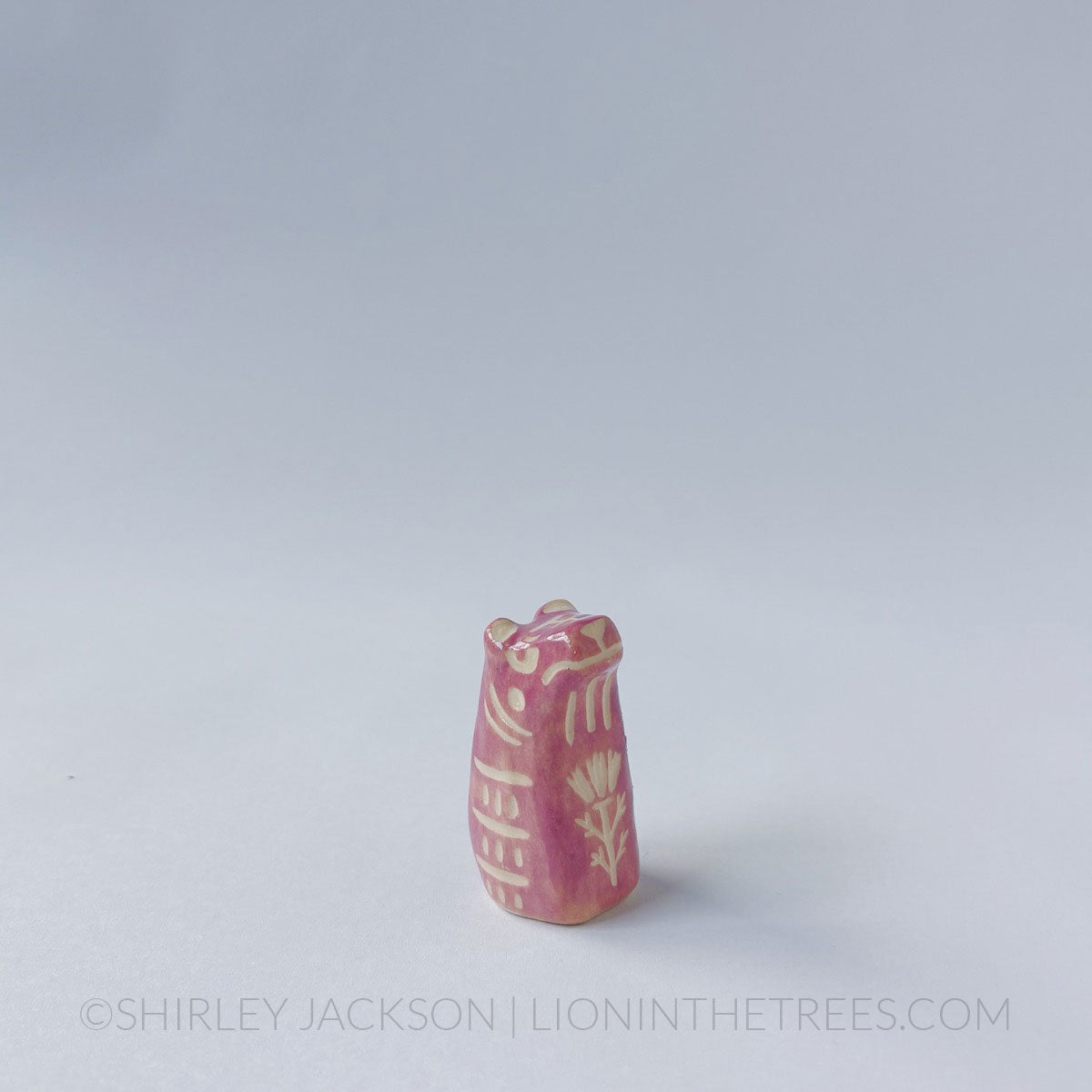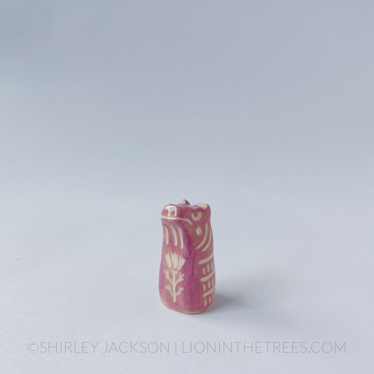 Tiger totem done with underglaze and clear glaze.