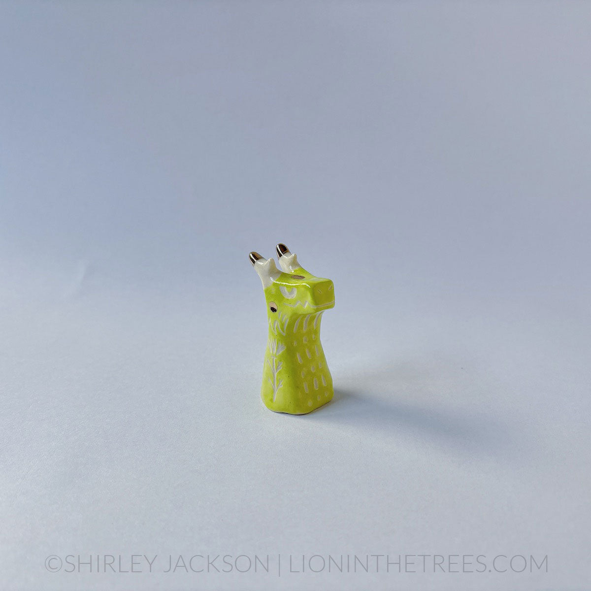 Green Dragon totem done with underglaze, clear glaze, and gold luster.