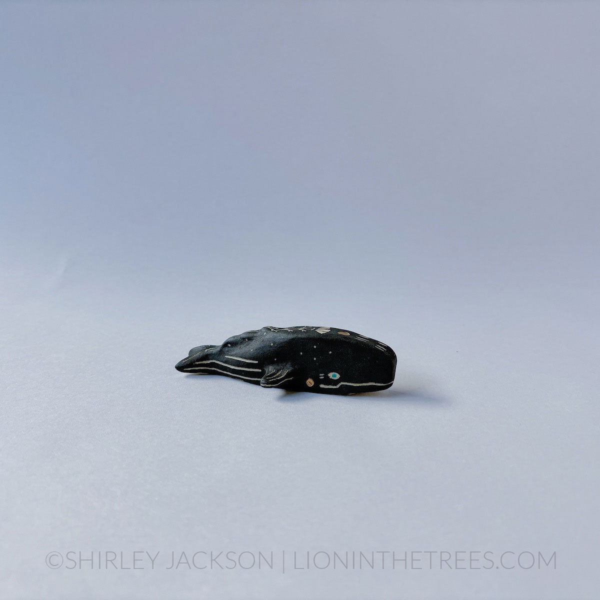 Mini Menagerie Sperm Whale totem done with various underglazes and gold luster.